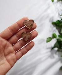 Ručno rađene naušnice od polimerne gline u toplim smeđim tonovima, s uzorkom inspiriranim slojevima zemlje. Zbog posebne igre tonova, ne postoje dvije iste naušnice, svaki komad je jedinstven. Naušnice dolaze na iglicama od nehrđajućeg čelika.