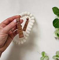 Ručno rađene naušnice od polimerne gline u toplim smeđim nijansama s nježnim, prirodnim prijelazima boja. Izduženi oblik daje im elegantan izgled. Naušnice dolaze na čeličnim iglicama, što ih čini izdržljivima i pogodnima za svakodnevno nošenje. Lagane su i ugodne, savršene za svaku prigodu.