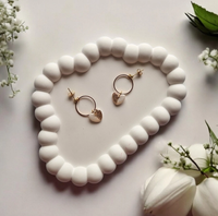 Ručno rađene naušnice od polimerne gline u obliku srca, s jednom polovicom posutom zlatnim šljokicama koje simboliziraju sjaj ljubavi i posebne trenutke. Vise na metalnom krugu zlatne boje, dajući im nježan, ali elegantan izgled.